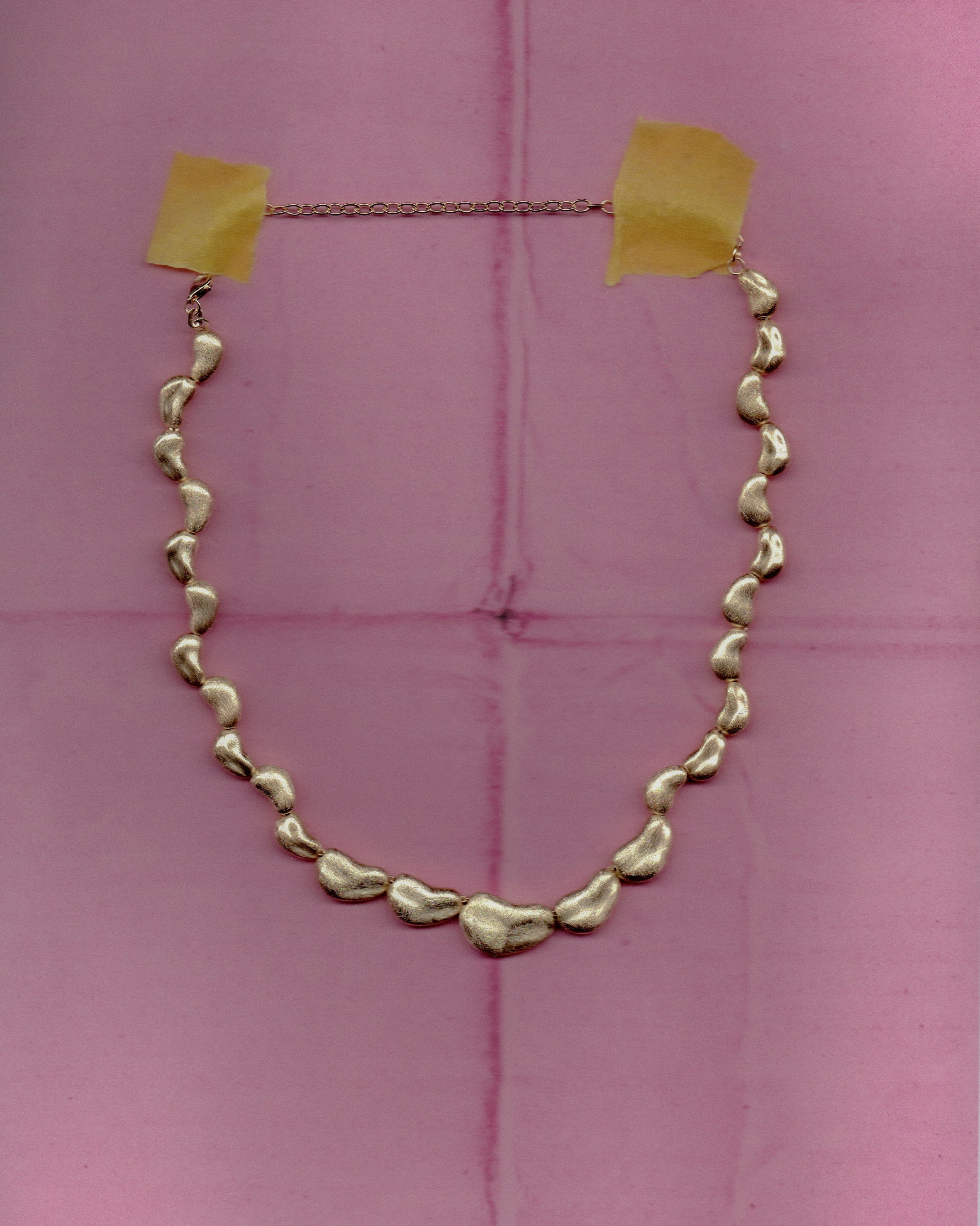 Inspired by the shape and texture of Cacao beans, this necklace features an organic and irregular design.